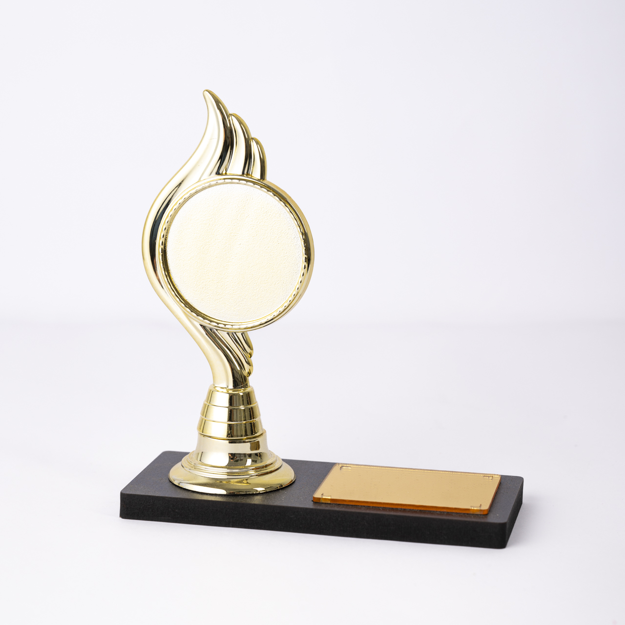 Ember of Honor is a Brazilian-made trophy featuring a flat black rectangular base that provides a sleek foundation. The flame riser adds a dynamic touch, symbolizing passion and achievement, while space for a metal plate allows for personalized engraving. This trophy is perfect for recognizing outstanding accomplishments and inspiring excellence.