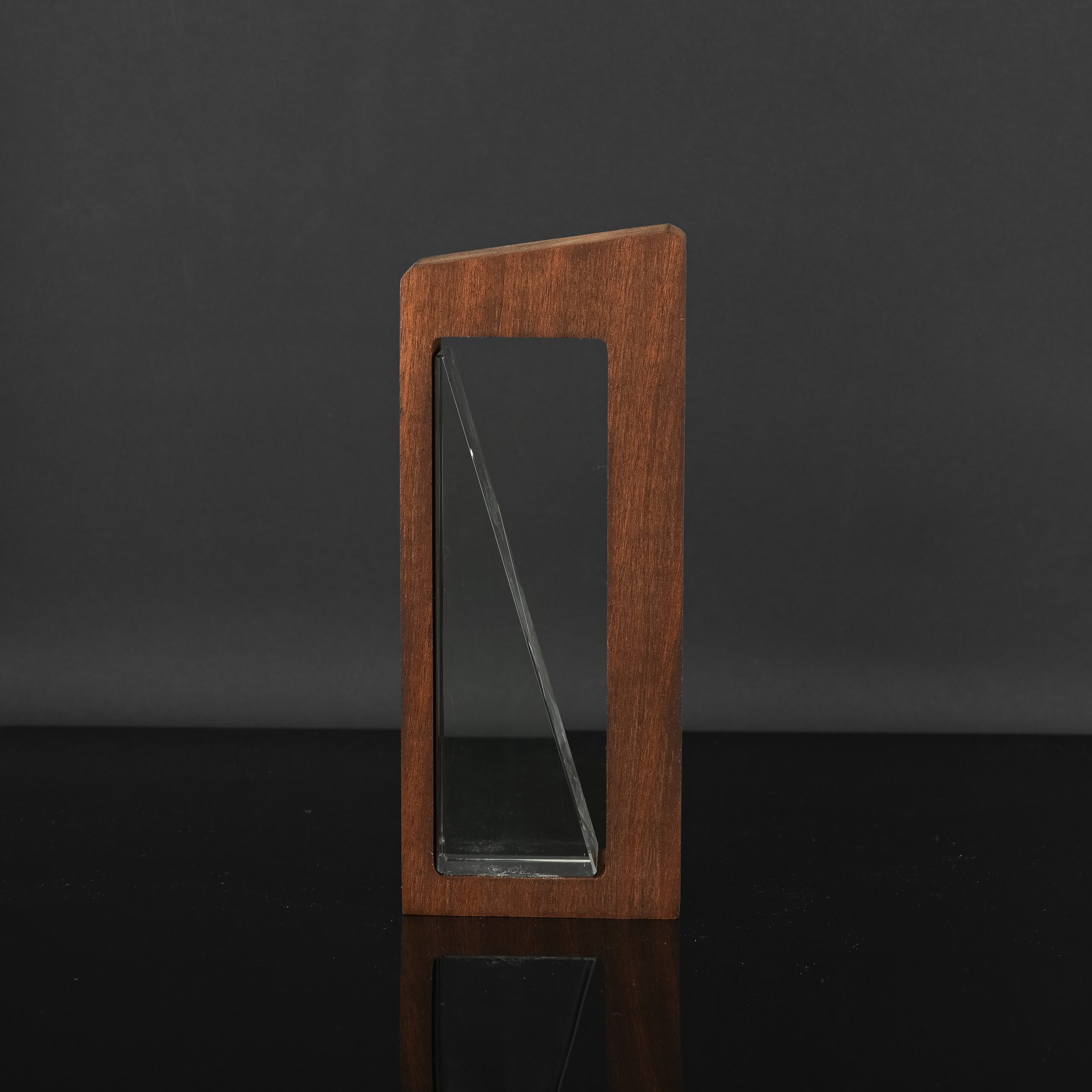 A modern fusion of glass and wood, representing clarity, strength, and achievement. The sleek, angular design embodies ambition and innovation, making it a distinguished award for excellence.