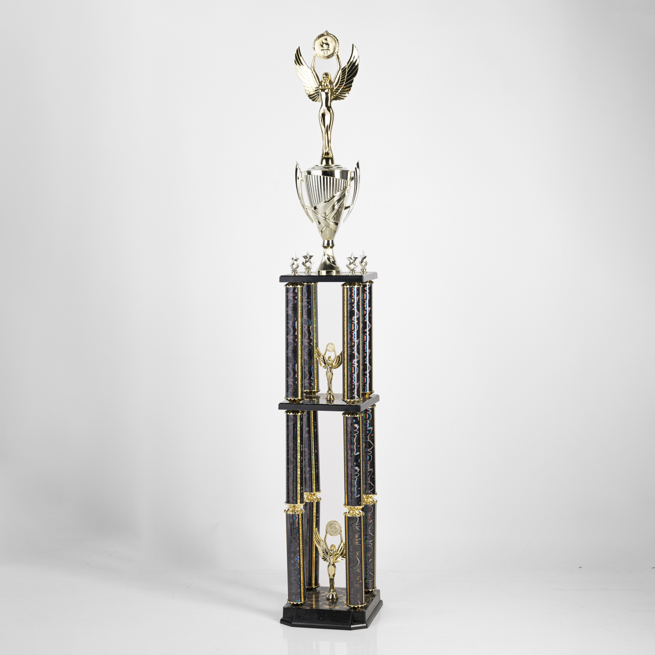 The Majestic Column Triumph Trophy stands tall and impressive, featuring three magnificent tiers supported by striking column beams that elevate the design. The sturdy plastic base ensures stability, while ornate embellishments and a gleaming cup at the top symbolize true excellence. Available in a vibrant array of colors, this trophy captures the spirit of victory and serves as a stunning centerpiece for any awards ceremony. Perfect for honoring outstanding performance, the Majestic Column Triumph Trophy is designed to inspire and celebrate greatness!