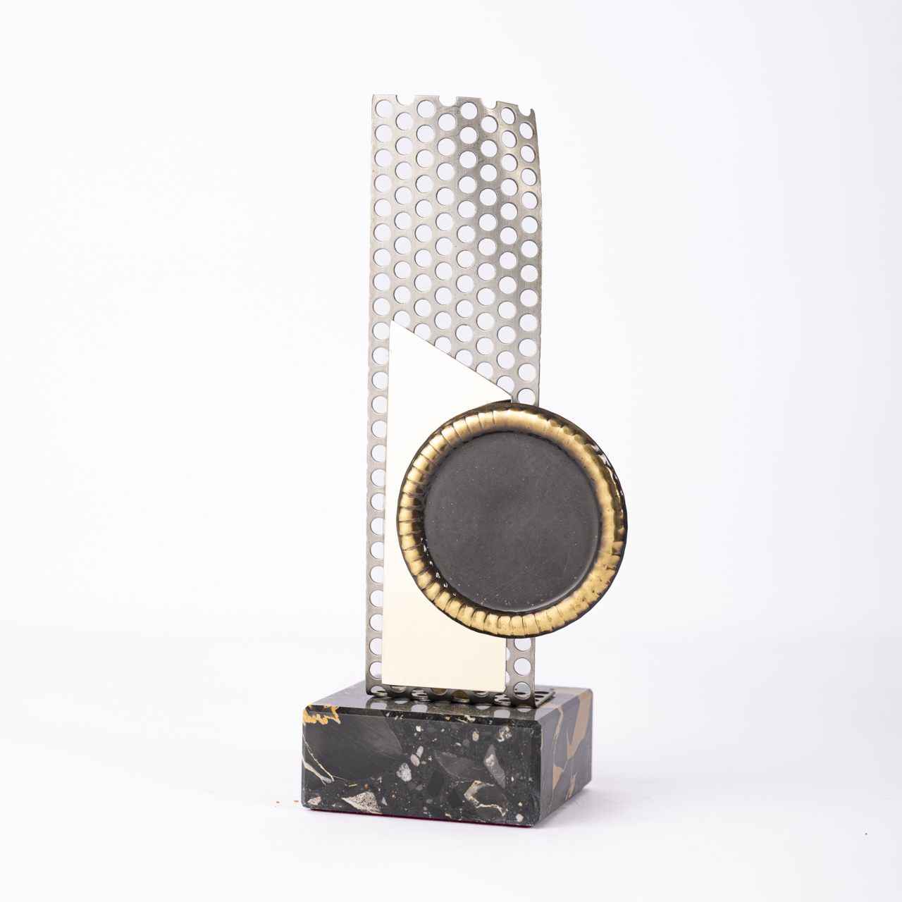 Introducing the Italian Handmade Metal Trophy, elegantly mounted on a sturdy marble base. This exquisite trophy showcases meticulous craftsmanship, featuring a striking metal design that captures the essence of achievement and excellence. The combination of the sleek metal and classic marble base creates a timeless piece that is perfect for awards ceremonies, competitions, or personal recognition. Whether celebrating sports, academics, or any achievement, this trophy is a distinguished way to honor success and inspire future accomplishments!