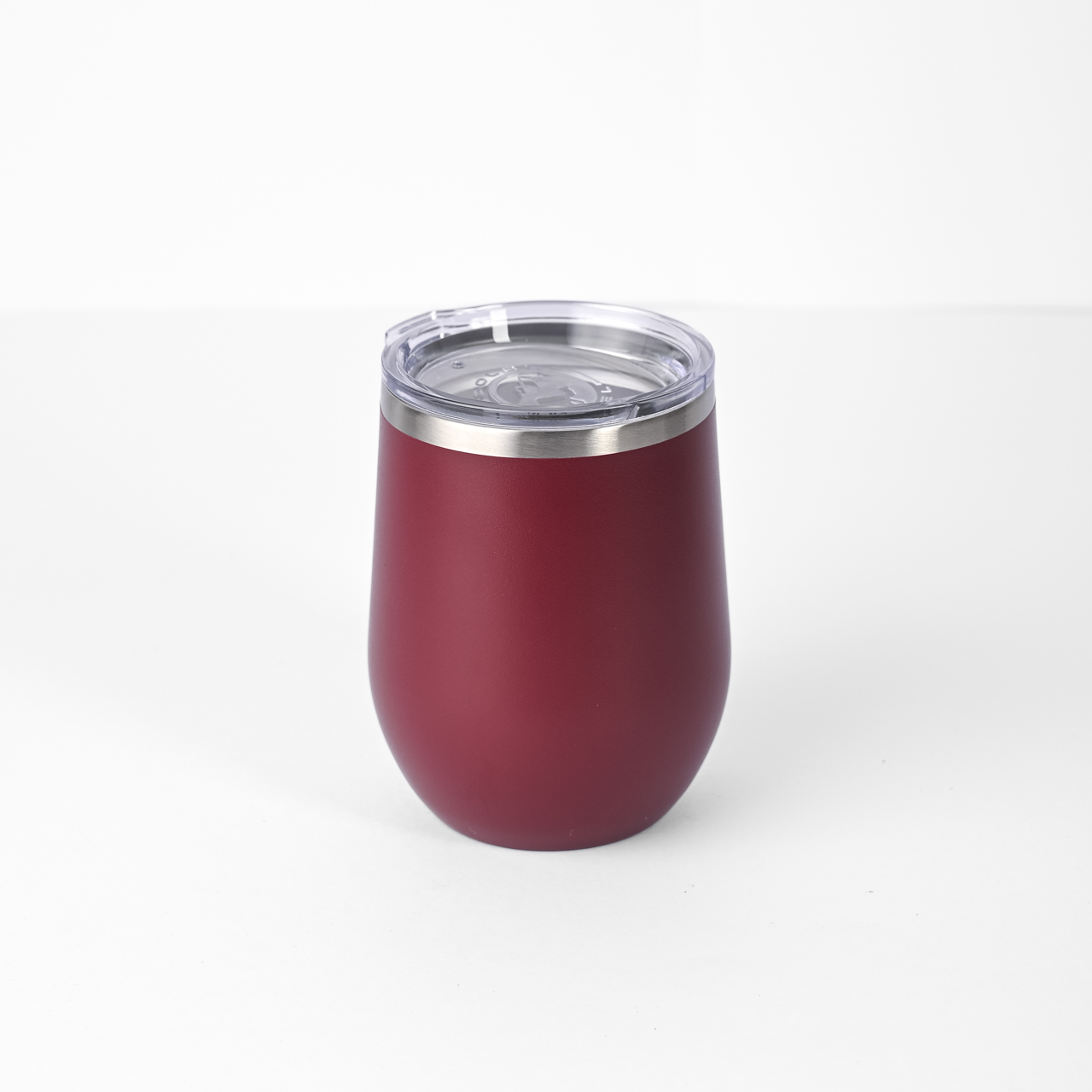 12 oz. Stainless Steel Polar Camel Stemless Wine Glasses feature double-wall, vacuum insulation with a clear lid. They are 2X heat and cold resistant compared to glass or plastic wine glasses. Polar Camels are made from 18/8 gauge stainless steel (18% chromium/8% nickel) – also know as Type 304 Food Grade.
