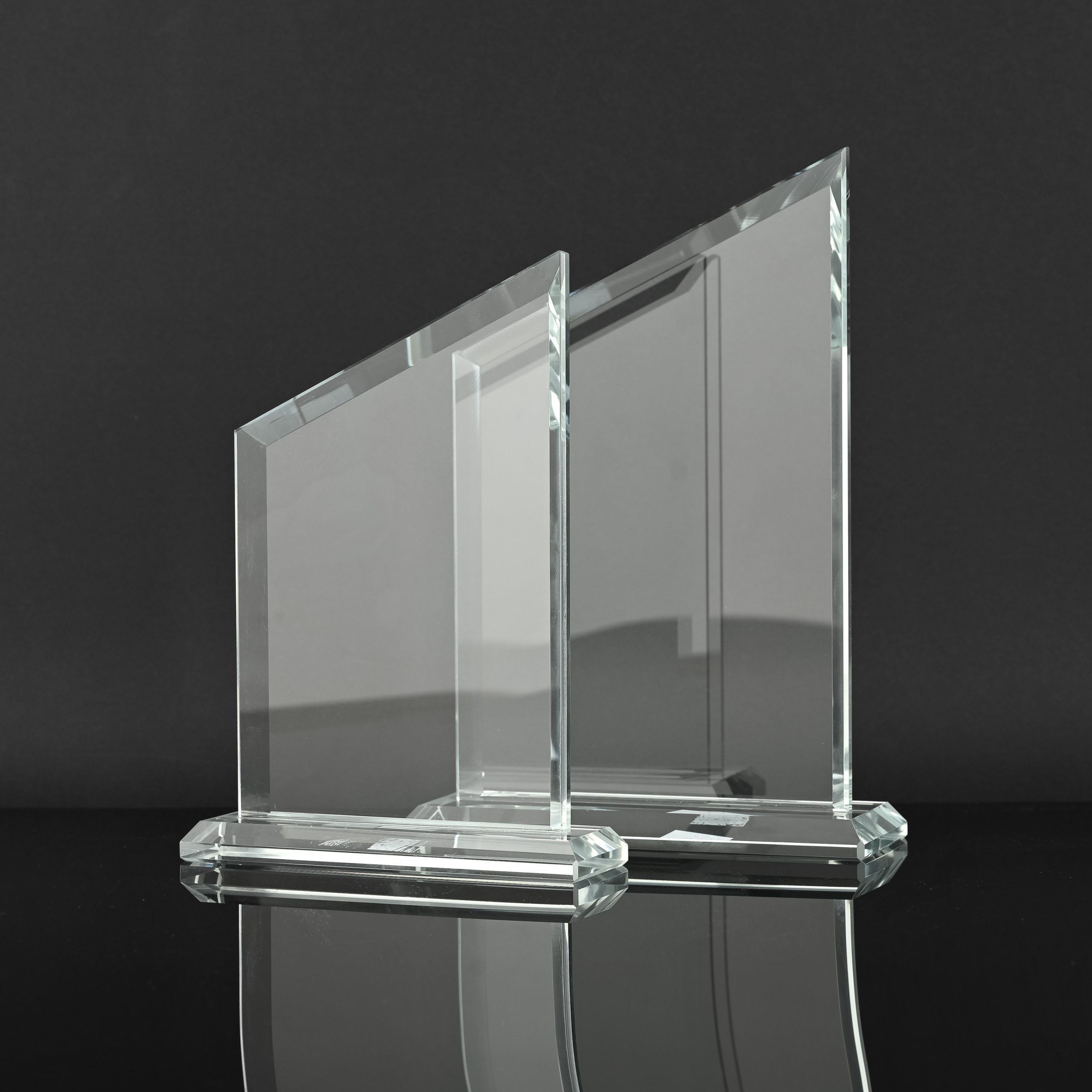 The Right Angle Glass Award features a striking 90-degree right angle shape with elegantly beveled sides, adding a touch of modern sophistication.